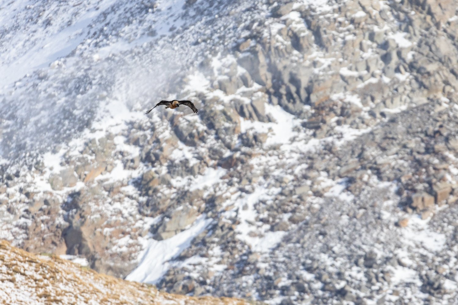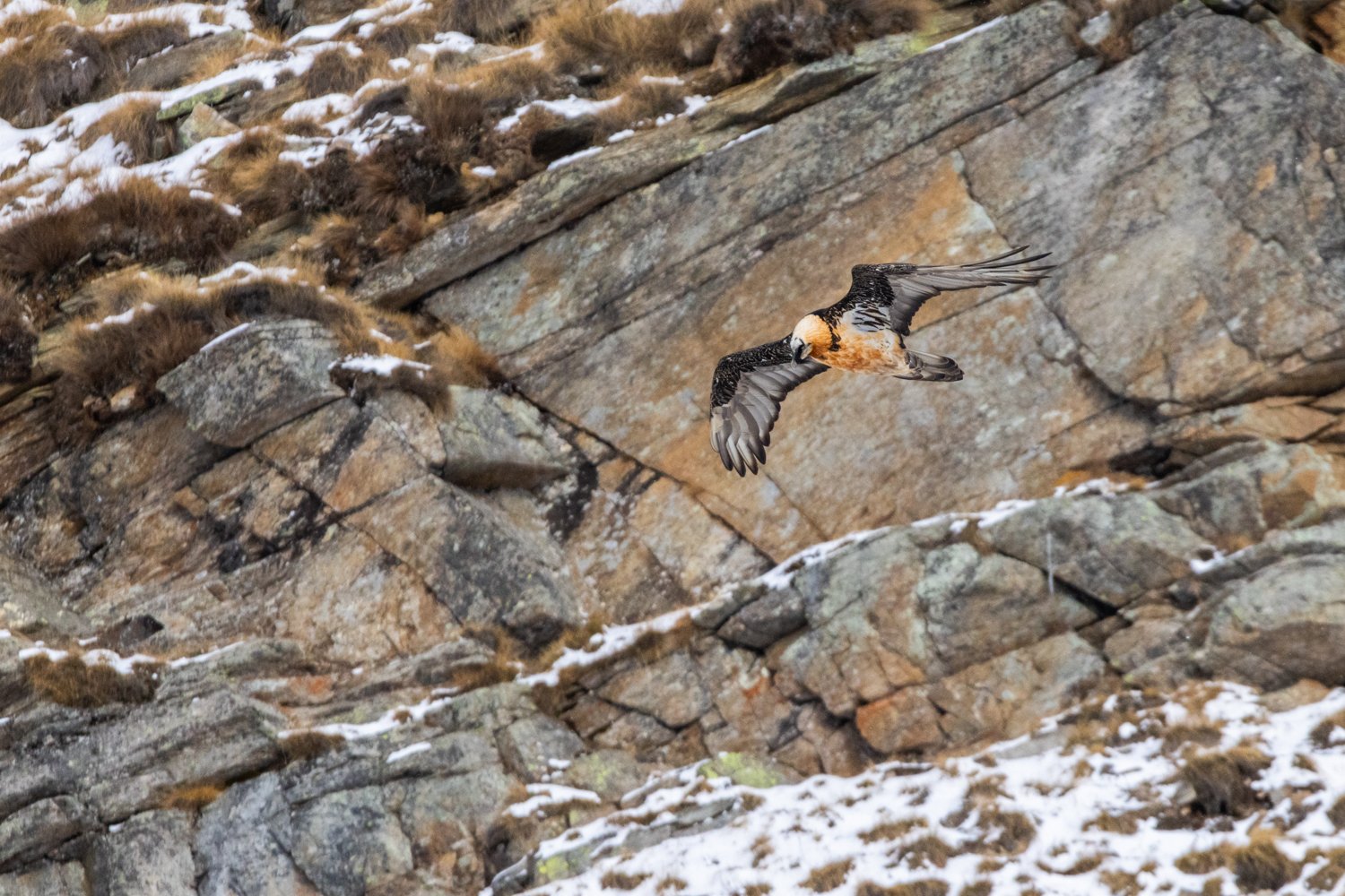Con una apertura alare che può superare i 2,70 mt, il gipeto è senza dubbio uno dei rapaci più impressionanti e maestosi delle montagne Alpine.